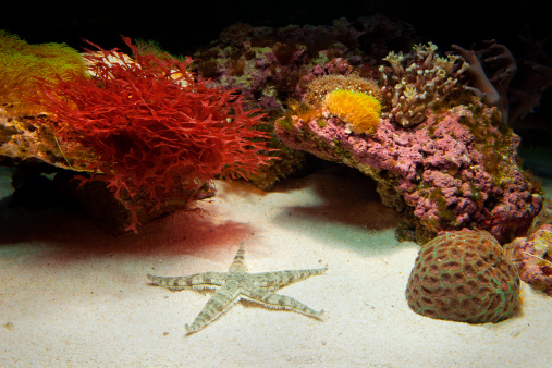Larry set up a marine water aquarium for his high school biology experiment. To get the aquarium started, Larry poured in several inches of sand and a chunk of live rock, which is ocean rock covered with marine bacteria, algae, and other organisms. After a few days, to Larry's surprise, he found a tiny sea star in the aquarium. He hadn't seen any Echinoderms ("spiny skinned" invertebrate animals) before he placed the live rock in the aquarium.