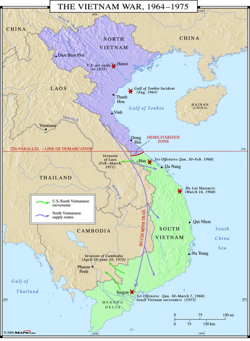 The countries of Vietnam, Laos, and Cambodia are ethnically very different, but they have a shared history—and they they have many things in common. All three countries were heavily influenced by India, and most of the residents of these three countries are Buddhist. Vietnam, Laos, and Cambodia were also French colonies and are collectively known as French Indochina. During World War II, the Japanese took control of Indochina, and at the end of the war, France wanted to regain control of the region.