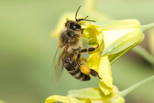![]() Bees and other insects are just some of the animals that carry pollen grains between flowers during pollination. |