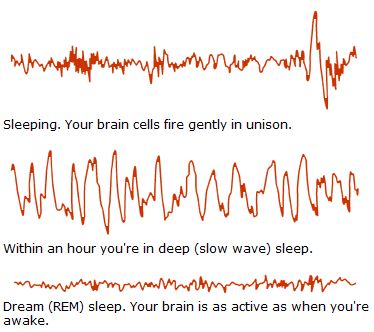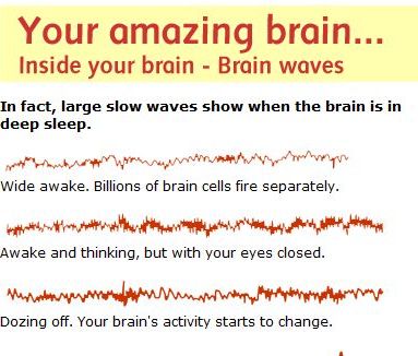 Look at the information below to see how your brain waves change from the time you are awake to the time you are in a deep sleep.