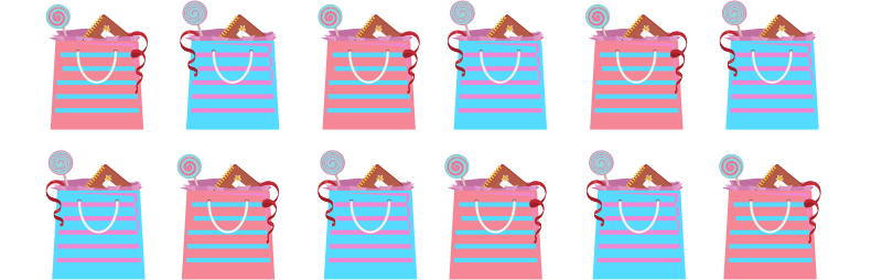 How many party bags are there? We need to write a multiplication sentence!