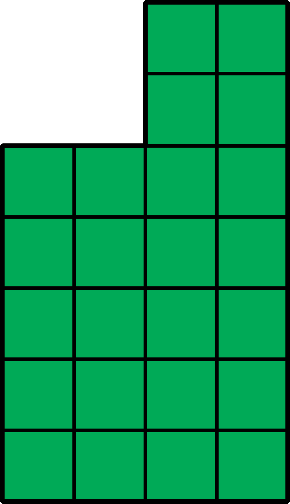 A grid with 5 rows and columns on the left side and 7 rows and 2 columns on the right side. The area is colored green.