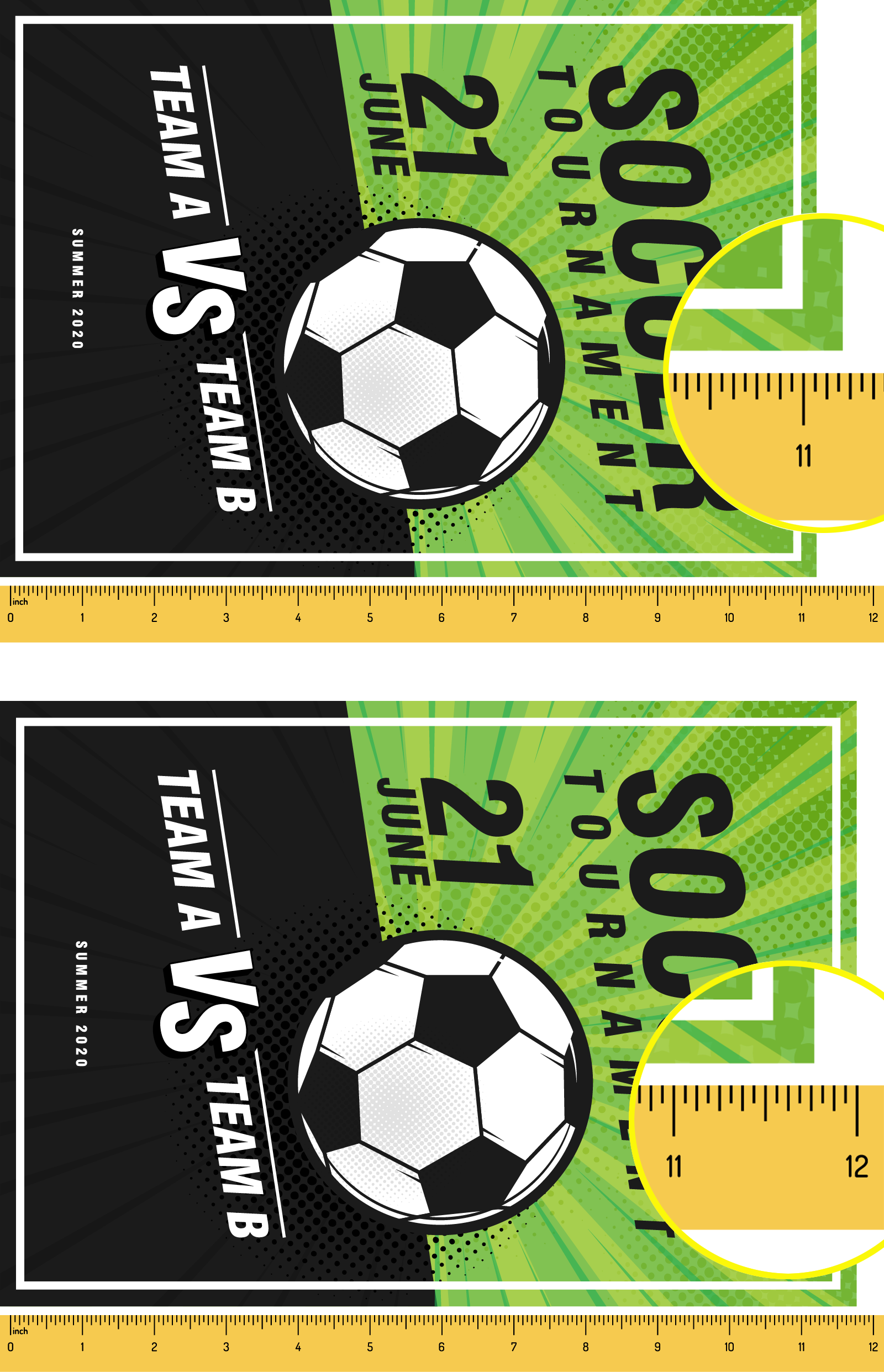 Two posters being measured. The first poster measures slightly longer than 10 inches. The second poster measures almost 12 inches.