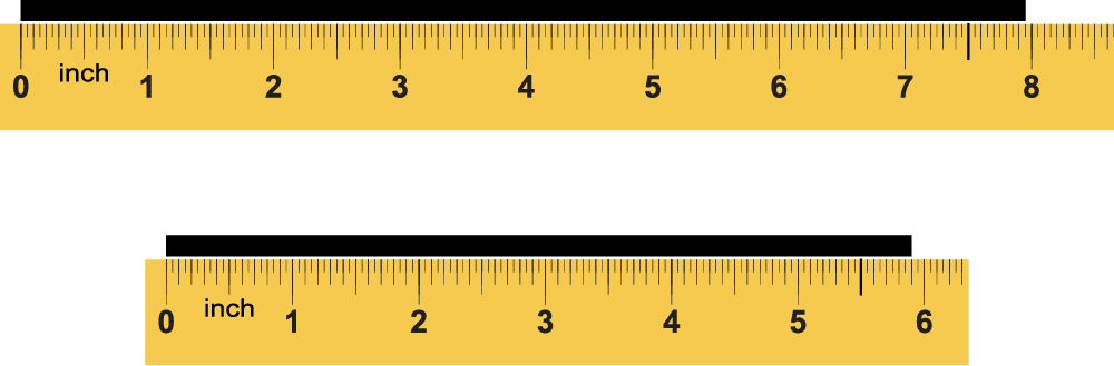 Two rulers. The first ruler is measuring a line that is slightly longer than 7 \(\frac{1}{2}\) inches. The second ruler is measuring a line slightly shorter than 6 inches.