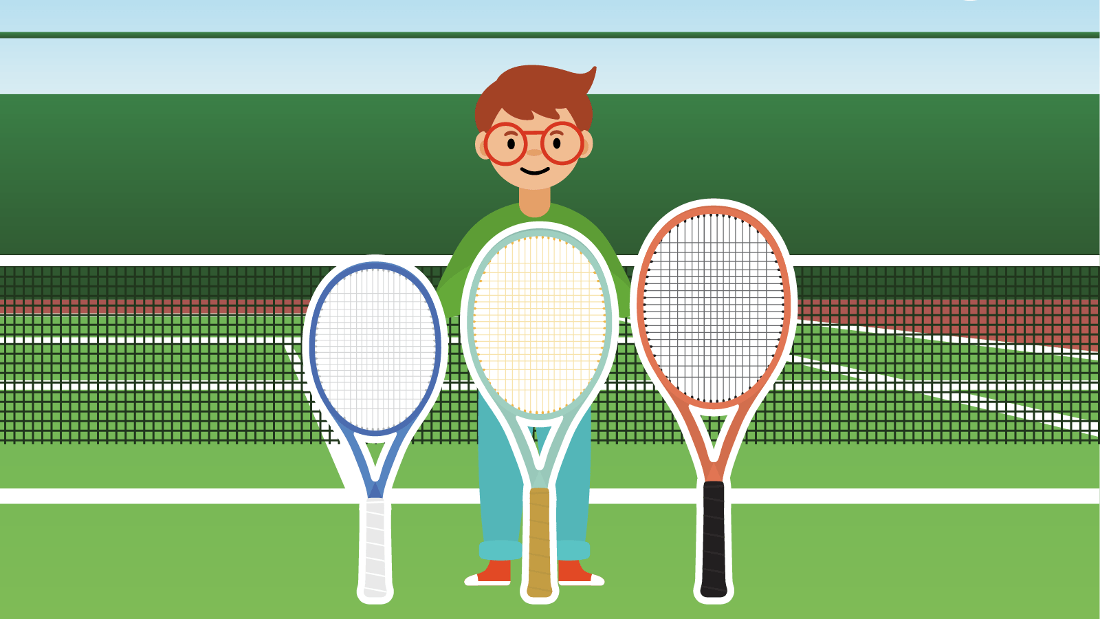 Logan with the three different sized tennis rackets. We are going to measure to find out the right size tennis racket for Logan.
