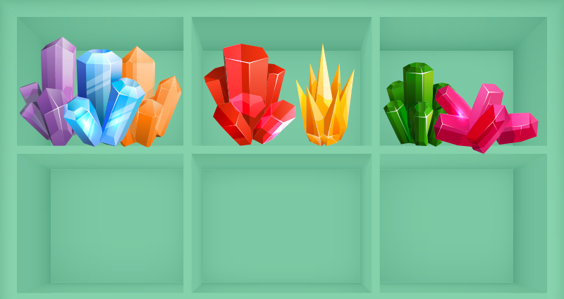 These boxes are parts of Caleb’s rock collection. The green box is \({ \frac{3}{6} }\) full. Make an equivalent fraction using the blue box.
