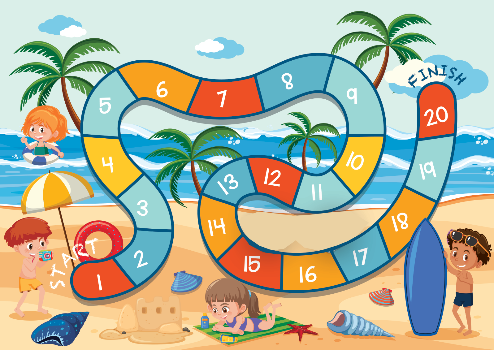 It is another summer day! Let’s play a game at the beach! Click the board to roll the dice.